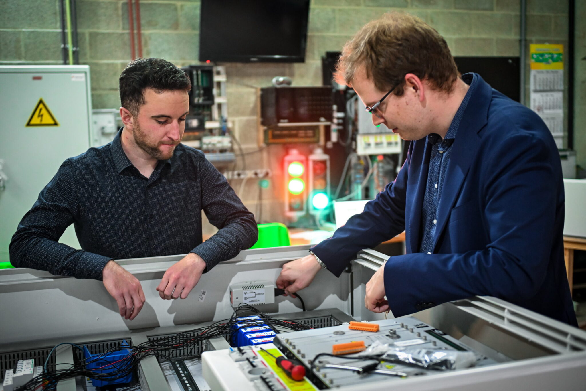 Gauthier Duchene, projectmanager bij EES Infra, en Julien Demori, ingenieur verantwoordelijk voor de technologische aspecten, zijn de belangrijkste managers van het Eagle Tec project. Samen houden ze toezicht op de modernisering van de kruispunten om beheersystemen op afstand te integreren en het verkeer vlotter te laten verlopen.